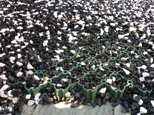 Mit Wabenmatten ist Splitt/Kies bequem begehbar. Im Gegensatz zu losem Material, sackt man nicht mehr ein. Mit Wabenmatten bereitet das Begehen sogar mit Stöckelschuhen und das Befahren mit Kinderwagen oder Rollstuhl, dem Fahrrad, Motorrad, PKW oder LKW auf Splitt und Kies kein Problem mehr.