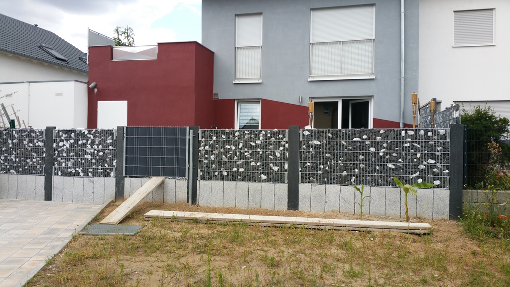 Geibel Bau steht für stilvolle Gartengestaltung, für Ambiente und für das Besondere. Nach diesem Anspruch wurde die Außenanlage mit Sicht- und Lärmschutz gestaltet. Sehr schmal mit geringer Maschenweite, massiv und doch filigran.